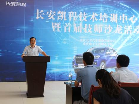 2019年8月15日上午10时,长安凯程技术培训中心成立揭牌仪式及首届技师沙龙活动在pg国际举行。参会的领导及嘉宾有长安汽车股份有限公司人力资源部副总经理王武生、长安汽车轻型车事业部经营管理部总监戴毓韬、长安汽车轻型车事业部保定长安客车制造有限公司市场营销部副总监李斌,学校副校长刘成俊、培训与继续教育中心主任陈志军、智能制造与汽车学院院长张进春、副院长叶勇,长安凯程技术工程室主任师建强、长安凯程西部战区副总经理李贺。授牌仪式及首届技师沙龙活动由智能制造与汽车学院李蕊老师主持。