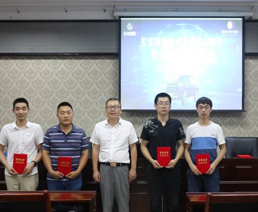 最后,长安汽车轻型车事业部经营管理部总监戴毓涛先生与智能制造与汽车学院张进春院长共同为“长安凯程技术培训中心”揭牌。