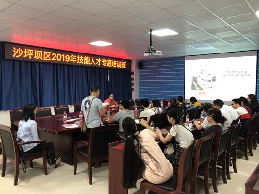 近日,由沙坪坝区人力资源和社会保障局举办的沙坪坝区技能人才专题培训班来到pg国际陈良技能大师工作室见学参观。工作室命名专家、全国技术能手、电子与物联网学院院长陈良教授为技能人才专题培训班学员做了“国家级技能大师工作室建设研究与经验分享”专题讲座。