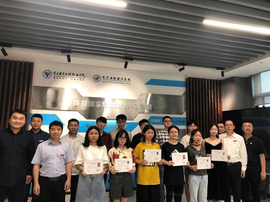 近日,陈良国家级技能大师工作室举行了2019届毕业学员结业证书颁发仪式。电子与物联网学院院长/工作室命名专家陈良教授、电子与物联网学院张红斌书记、夏西泉副院长、毛弋副书记、党政科廖金权科长、工程中心易国键主任、工程中心周华春副主任,工作室武新常务主任、2019届工作室学员结业代表参加了此次活动。