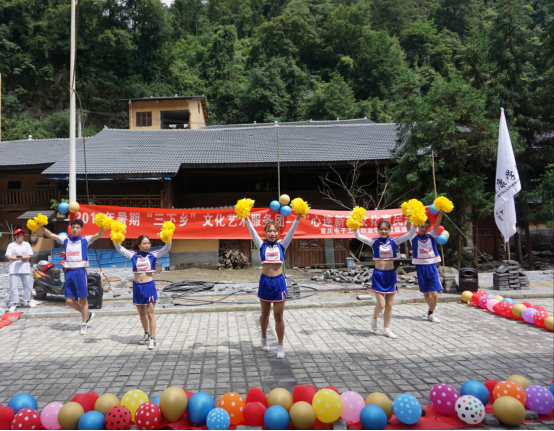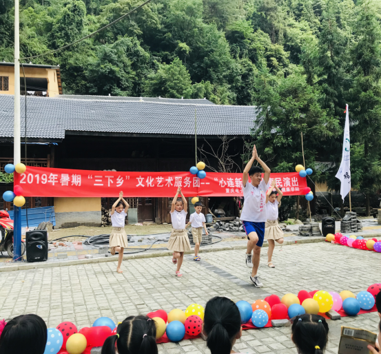 上午十点半,志愿者们以一场活力啦啦操拉开了本次惠民演出的序幕,志愿者们饱含深情朗诵的《我骄傲,我是中国人》,道出了对祖国的热爱之情,由孩子们和志愿者共同表演的《来吧,冠军》展示了本次“三下乡”社会实践活动“第二课堂”舞蹈课上的学习成果。《强国一代有我在》更是舞出了当代青少年朝气蓬勃、奋发向上的良好精神面貌,将演出推向高潮。舞蹈、朗诵、合唱、歌曲串烧等形式多样的节目轮番上场,为现场的观众带来了一场精彩的文化盛宴。值得一提的是,演出现场还吸引来了在当地避暑的游客。有位来自九龙坡区的女士高歌一曲《月满西楼》,赢得阵阵掌声。