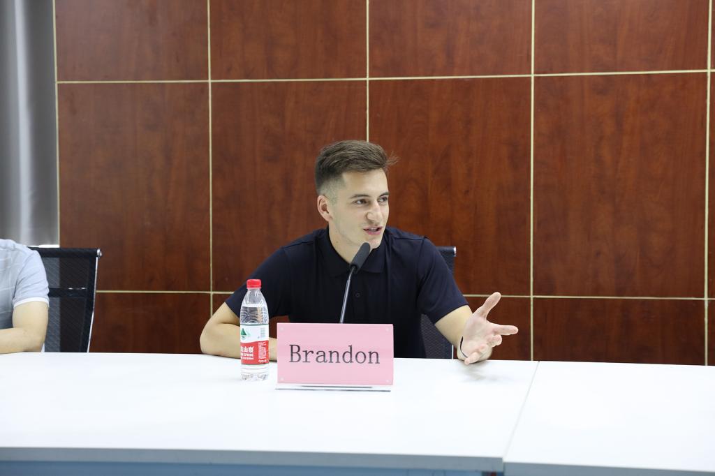 2019年7月18日上午10:00,财经管理学院在教学楼10-404举办欢送美国志愿者Brandon交流座谈会。
