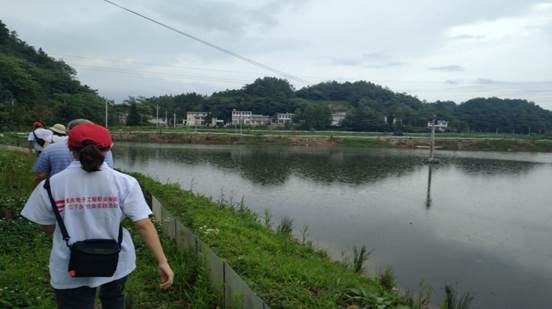 陈队长和罗书记带领实践团队成员实地参观生态大闸蟹养殖基地
