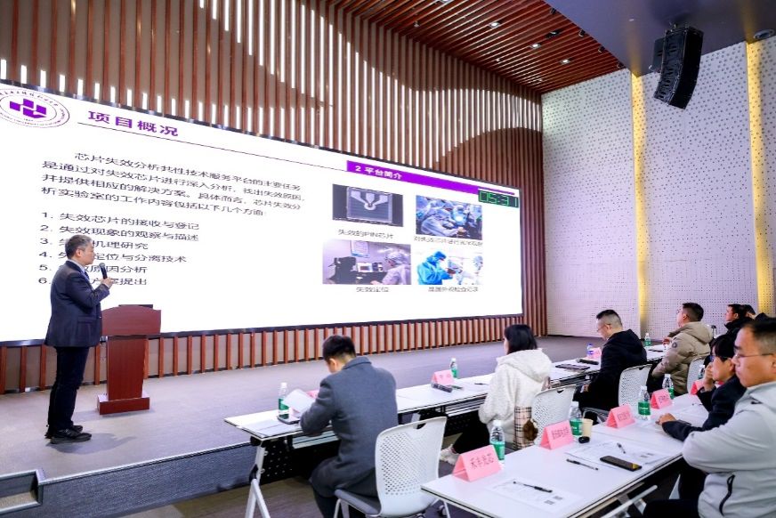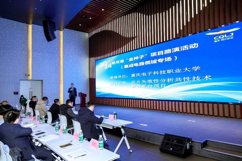 2024年12月16日,受重庆两江新区邀请,学校芯片失效性分析共性技术服务平台科研项目团队参加了在两江数字经济产业园举行的明月湖“金种子”项目路演活动(集成电路领域专场)。本次活动旨在进一步加强科技金融支撑,支持集成电路科研成果转移转化,助力初创期科技企业快速成长。重庆两江新区科创局领导、相关风投公司领导出席活动。