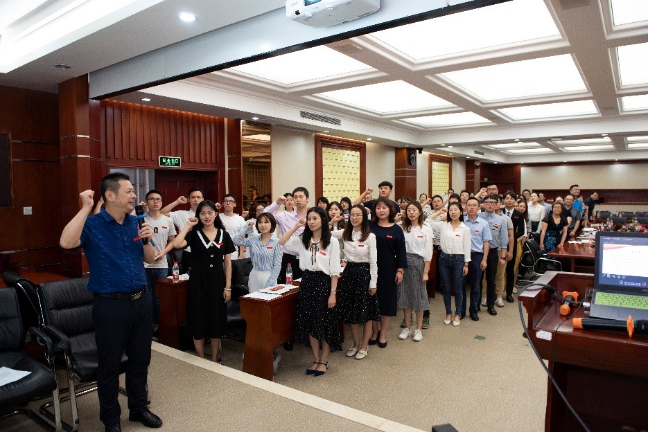 随后,在副书记唐玉林的引领下,进行庄严宣誓:“我志愿成为重庆电子工程职业学院的教育工作者,忠诚党的教育事业,遵守教育法律法规,履行教书育人职责,培育优良师德师风,坚持立德树人,做到有理想信念、有道德情操、有扎实学识、有仁爱之心,做重电学子健康成长的引路人!厚德强能、求实创新,龙翔马越、博润致远,尽快融入重电,做奋进‘重电人’,推进重电教育事业高质量发展!”新教师紧握右拳、用铿锵有力的声音作出了新重电人的庄严承诺,在场每个人深受感染!