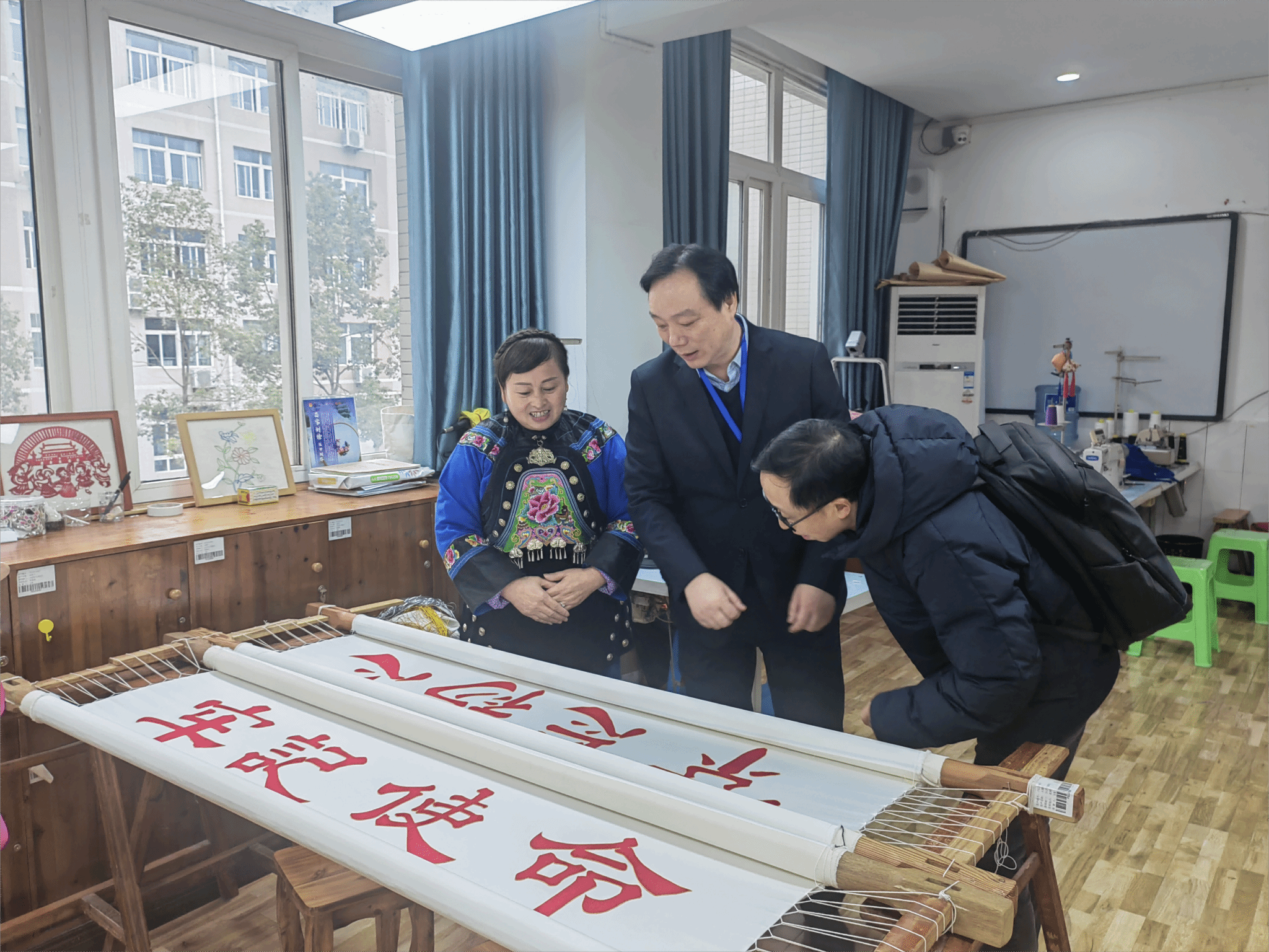 导师队武春岭、韩世海两位劳模考察“麻兴姐苗家刺绣大师工作室”