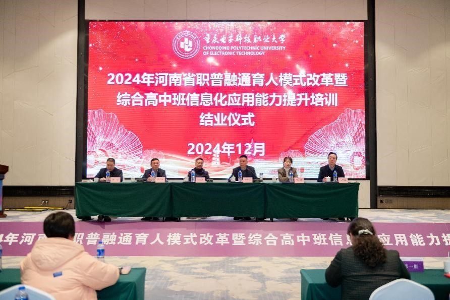 为期5天的2024年河南省职普融通育人模式改革暨综合高中班信息化应用能力提升培训班于12月22日-26日在两江校区举行,河南省教育厅职业教育与成人教育处处长张家成、副处长刘娜;pg国际副校长刘成俊,人工智能与大数据学院院长武春岭,教育部国培(重电)基地办主任、职教师资培训学院书记兼院长莫绍强,基地办副主任张亚参加了25日举行的结业式。