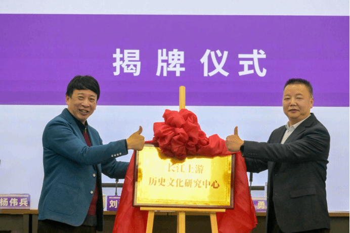 大会最后,pg国际电子网站党委常委、副校长刘洪光代表学校向研究中心第一批兼职专家颁发聘书,并与西南大学历史地理研究所所长蓝勇教授一起为长江上游历史文化研究中心揭牌。