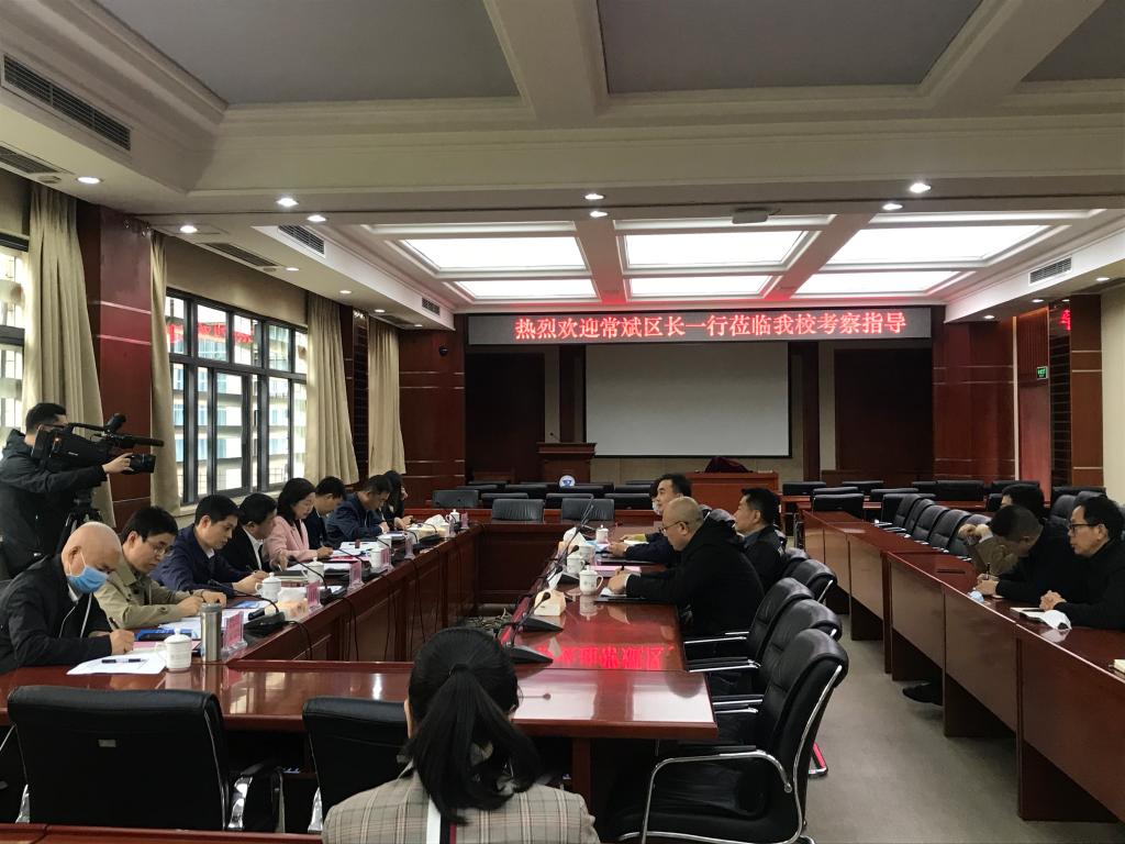 4月21日下午,沙坪坝区区长常斌、副区长周红玲及区政府办、区教委、区人社局、区住建委、区档案局、区规自局、不动产登记中心主要负责人一行来pg国际调研并召开工作交流会。学校党委书记孙卫平,党委副书记、校长聂强,副校长幸昆仑、谢义华及相关职能部门负责人参加此次会议。
