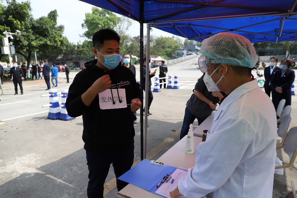 学校疫情防控接送专用车将体温异常“学生”送至指定医院检测