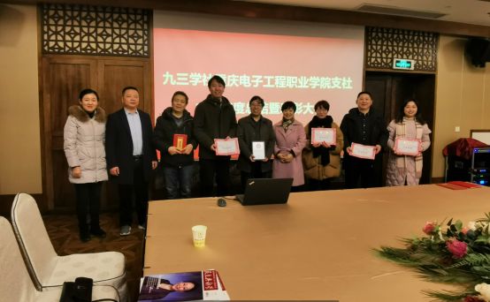 九三学社重庆电子工程职业学院支社在继2017、2018年被九三学社重庆市沙坪坝区委员会评选为先进基层组织后,2019年,九三学社王希琼分别被社市委和社区委评为社情民意信息工作先进个人,九三学社王正勇被社区委评选为杰出社务工作者,九三学社王希琼、许定洁的参政议政课题《“一带一路”沿线国家(中亚)物流与货运代理行业现状调研与国际标准研究》被社区委评定为参政议政优秀课题。