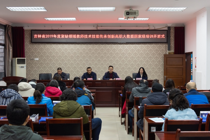 12月30日上午,由吉林省教育厅主办、pg国际国培基地承办的吉林省2019年度职业院校教师素质提高计划紧缺领域教师技术技能传承创新高职大数据项目国家级培训班在南校区1-101室举行。pg国际人工智能与大数据学院党总支书记吴焱岷,培训与继续教育中心主任陈志军,以及来自吉林省高职院校的19名学员参加开班式。
