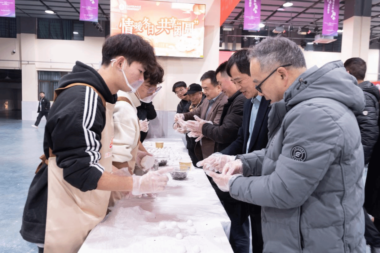 隆冬虽已至,暖意且融融。为提升本次“冬日暖阳”慰问活动的层次性和感染力,值此新春佳节之际,智能制造与汽车学院将中华民族传统文化教育与劳动教育融入其中,精心策划了“情暖冬日,共享团‘圆’”包汤圆活动,为活动营造了浓厚的节日氛围。活动现场,学生志愿者们早早地忙活了起来,提前准备好糯米粉、馅料等食材,大家有的揉面团,有的包馅料,有的撒面粉,忙得不亦乐乎。聂强校长一行领导纷纷参与其中,与学生们一起包汤圆、话家常,在欢声笑语中一颗颗汤圆落入盘中,活动现场变成欢乐的海洋。