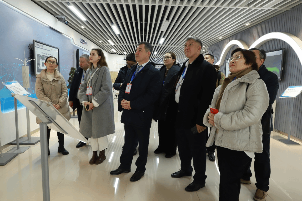 哈萨克斯坦教育代表团先后考察参观了学校校史馆、网络安全实训基地、重电-华为ICT智慧中心、奇格半导体产教融合基地,沉浸式体验了虚拟现实(VR)、增强现实(AR)等先进技术,对学校在产教融合和对外开放合作办学取得的成果表示高度肯定。