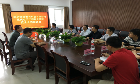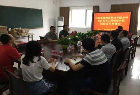 2019年6月24日上午,吉利国际教育集团(北京铭福科技教育有限公司)副总裁戴盛中、产品总监王苏一行莅临智能制造与汽车学院考察交流,洽谈校企合作事宜。学校副校长刘成俊、科研与社会服务处处长许磊、智能制造与汽车学院院长张进春,社会服务科科长甘守武,系主任王勇、陈世江和教师邓家彬、范梦阳参加了本次交流会。