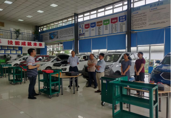 在参观过程中,陈世江主任向来宾讲解了汽车实训中心的运行以及所承担的社会培训情况。
