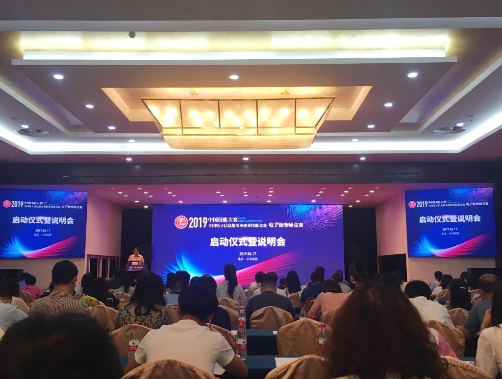 6月17日,2019年中国技能大赛-全国电子信息服务业职业技能竞赛-电子商务师赛项启动仪式暨说明会在北京万寿宾馆隆重召开。中国电子商会王宁会长、大赛组委会副主任周明、大赛专家委员会主任聂林海出席会议,来自全国各地300多所学校代表赴会。电子与物联网学院电子产品营销与服务专业夏新森、周艳艳老师参加了本次大会。