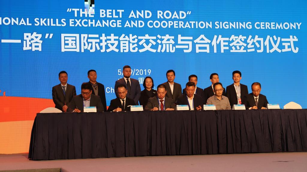 2019年5月29日,“一带一路”国际技能大赛进入第二天的赛程,作为大赛的重要环节的“一带一路”国际技能交流与合作签约仪式在重庆国际博览中心举行。学校党委副书记唐玉林、副校长龚小勇、国际交流与合作发展处处长莫绍强参加了签字仪式。龚小勇副校长代表学校与匈牙利贸易促进局驻西南(成都)代表处、法国中法教育交流协会西南代表处签署了有关合作协议。