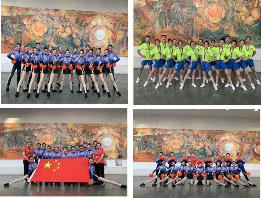 一遍一遍的重复动作,一次一次的突破难度,他们深知,作为第一批走出国门的啦啦操队员,他们不被允许放弃,我们不知道他们拿到这块奖牌时有多么的欢呼雀跃,因为我们无法体会,所有努力没有被辜负的那一份成功,继续加油吧!未来还会更优秀!