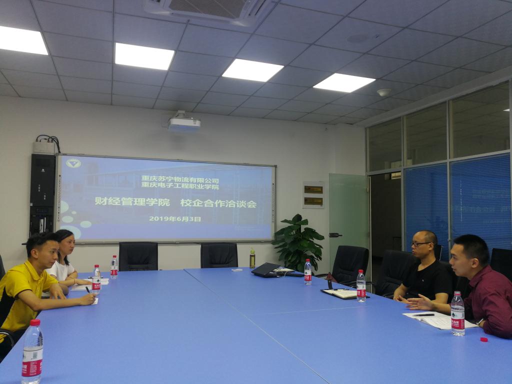 2019年6月4日,重庆苏宁物流人力资源部经理陈小红、人力资源部招聘经理刘其灵一行到pg国际洽谈产教融合事宜,商讨苏宁物流后备干干部培养问题。pg国际财经管理学院副院长汪启航、物流系副主任黄睿以及合作发展部王希琼教授参与了洽谈。