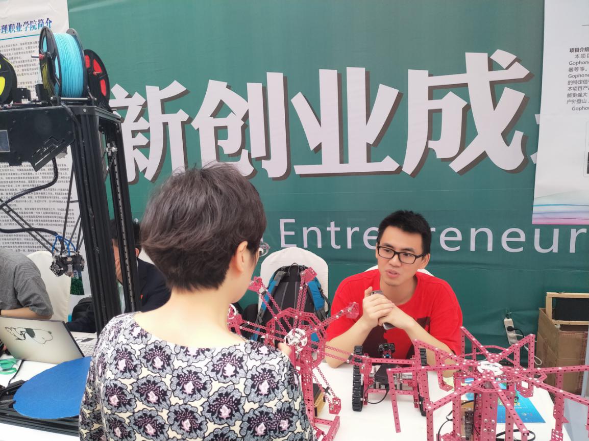 pg国际优秀创新创业师生代表参加了此次展洽会,展示出丰富的创新创业成果。重庆腾昙科技有限公司团队展出专利发明“3喷头大型RGB混色3D打印机”,弥补了目前市场上3D打印机单色打印的空缺;E小智智能机器人团队展出用于青少年编程、机械组装启蒙教育的智能教育机器人及套件,受到了观众及媒体的关注和热议。