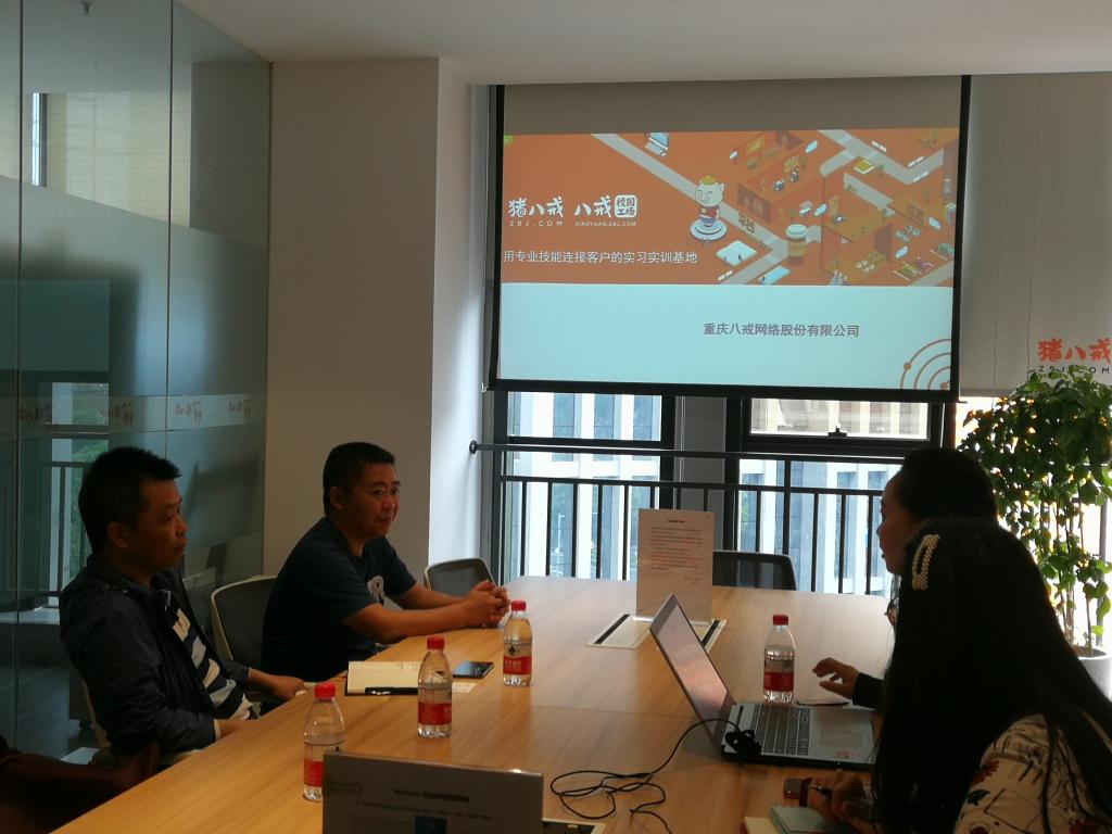 2019年5月22日,pg国际财经管理学院院长黄志平教授、电商系主任董征宇教授、合作发展部主任王希琼教授一行赴重庆猪八戒网络有限公司洽谈校企合作。