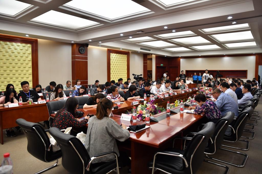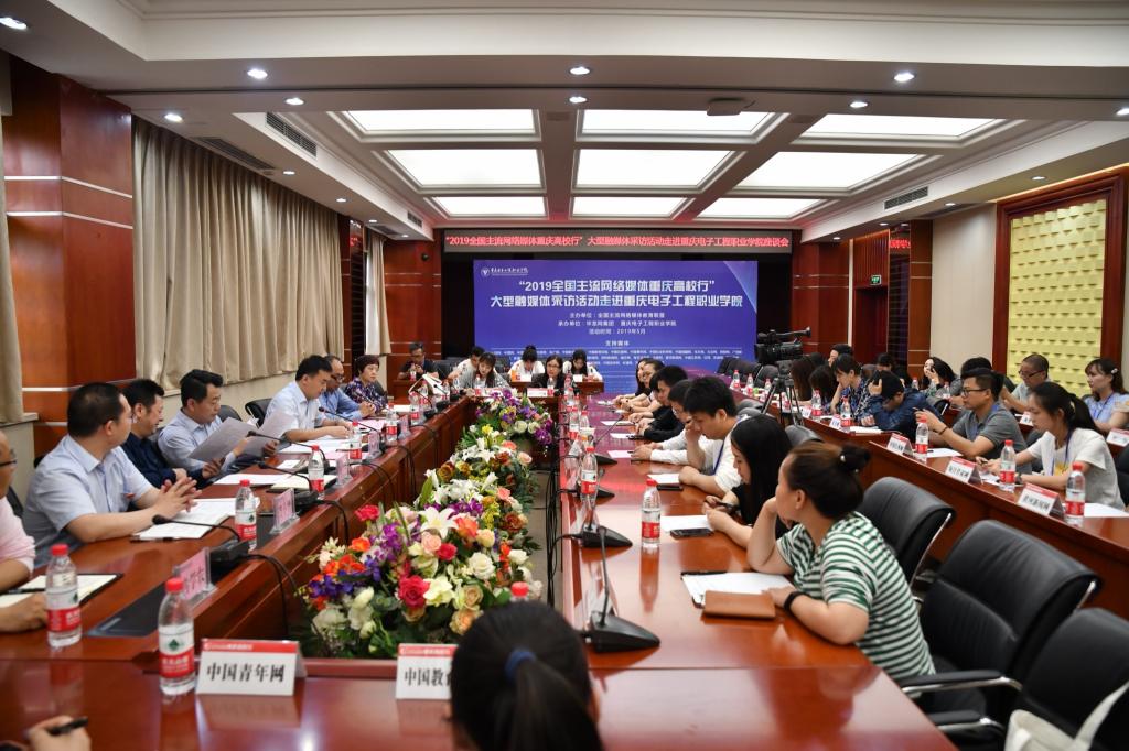 现场采访参观结束后,“2019全国主流网络媒体重庆高校行”大型融媒体采访活动走进重庆电子工程职业学院座谈会在pg国际博润厅举行。