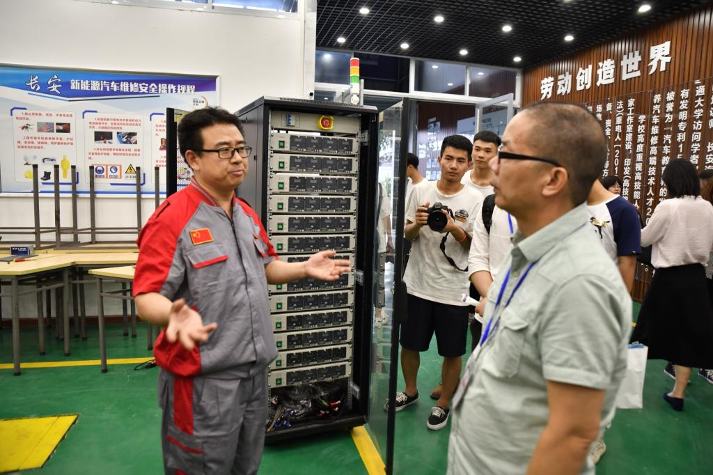 感受完重电师生的双创活力,采访团来到长安汽车大学智能制造工程学院,感受学校技能“大师”的魅力。长安汽车大学智能制造工程学院是学校与重庆长安汽车股份有限公司在“全价值链下的校企战略联盟”合作基础上,共同成立的一所具有混合所有制特征的产业学院。