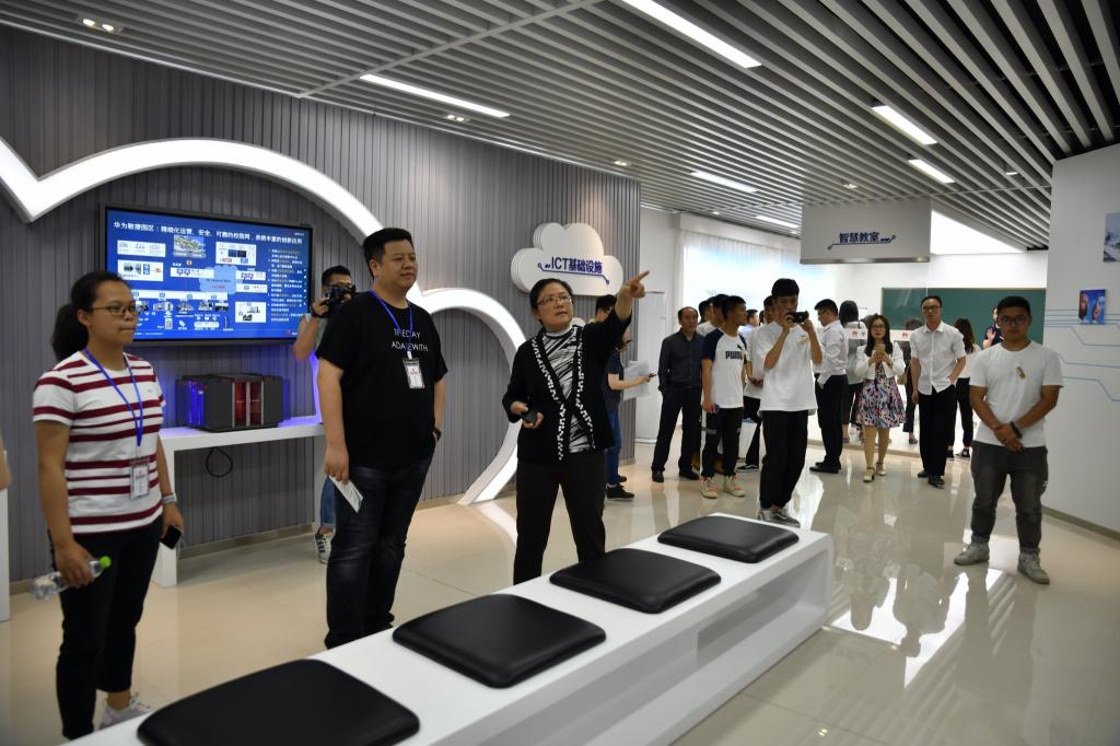 创新中心内,一间“智慧教室”引起了记者团成员们的兴趣。通过教室无线网络、云桌面产品,终端PAD、视讯产品等产品组成云管端的架构,结合教学分析、课堂管理等业务应用,可对教学的各个阶段进行智慧化管理,为实现“课堂革命”铺平了道路。在创新中心的另一端,采访团成员们可以通过屏幕感受学校生活、教学等工作的智慧化,这是学校与华为公司合作的智慧校园IOC智能运营中心。通过“一网、一中心、一平台、N应用、一管理”的模式,促进学校“智慧校园”建设。