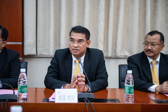 泰国政府总理办公室特别顾问本松.禅颇博迪先生在讲话中表示希望中泰双方彼此加强战略沟通、完善合作机制、丰富合作内容、创新合作模式、拓展合作空间,以共建“中泰国际学院”为新的起点,扎实推进互惠共赢,因地制宜,谋划长远,在人才培养、社会服务和文化传承等各个方面取得新的突破。