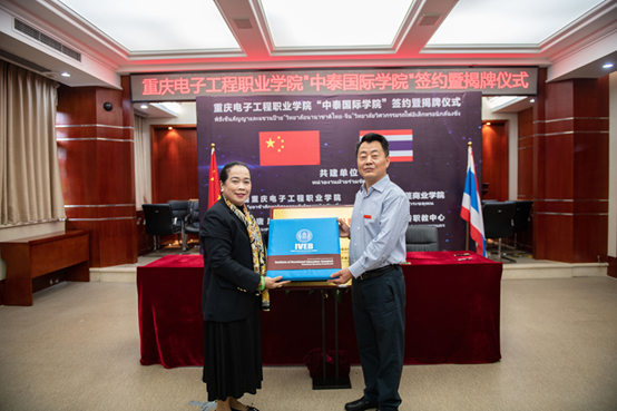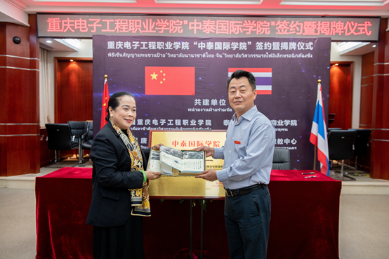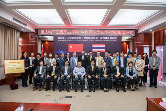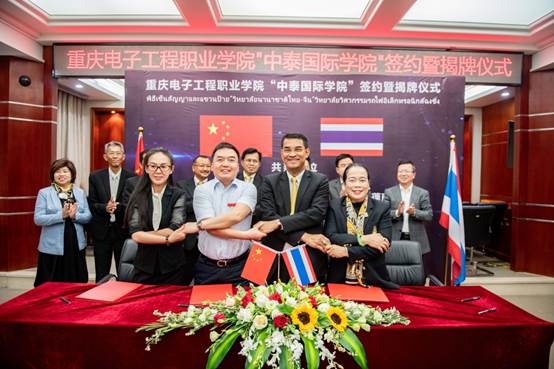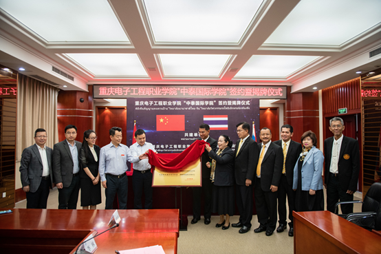 首先校党委书记孙卫平先生致欢迎辞,对各位领导嘉宾的到来表示欢迎。他表示,重庆电子工程职业学院作为中国100所国家示范性高等职业院校之一,拥有悠久的办学传统和优秀的师资条件。五年来,学校认真贯彻中国教育部印发的《推进共建“一带一路”教育行动》要求,积极实践“走出去”和“引进来”的职业教育开放办学理念,紧跟新时代职业教育步伐,加快了国际化办学进程。“中泰国际学院”就是学校主动融入、创新实践国家“一带一路”倡议的具体行动。孙卫平指出,国际化办学对于职业教育的发展,是机遇、也是挑战,更是责任。中泰双方有信心把该学院打造成一个集人才培养、高端培训、成果孵化等功能的国际化平台。随后重庆电子工程职业学院“中泰国际学院”签约暨揭牌仪式举行。