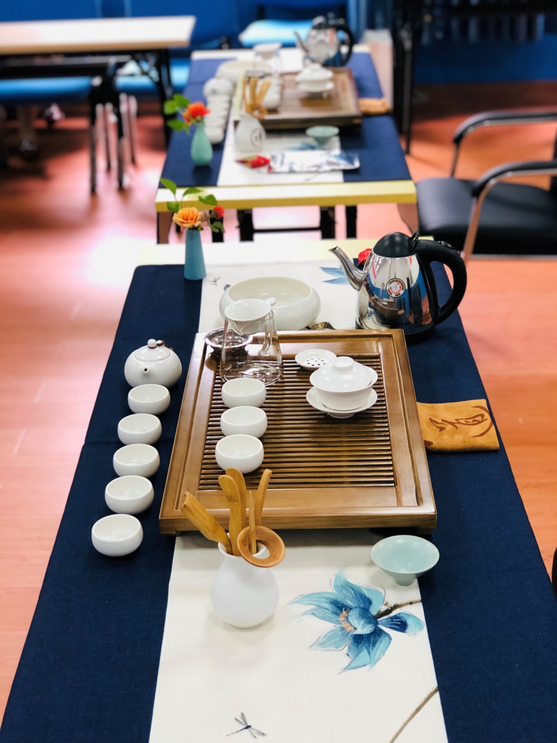 2019年5月9日下午,窗外阳光明媚,春意盎然,室内雅乐阵阵,幽香团团。通识教育与国际学院的老师们正在和全体留学生一起,探中华文明之源,赏中华文明之美,深度体验中华茶艺的魅力。