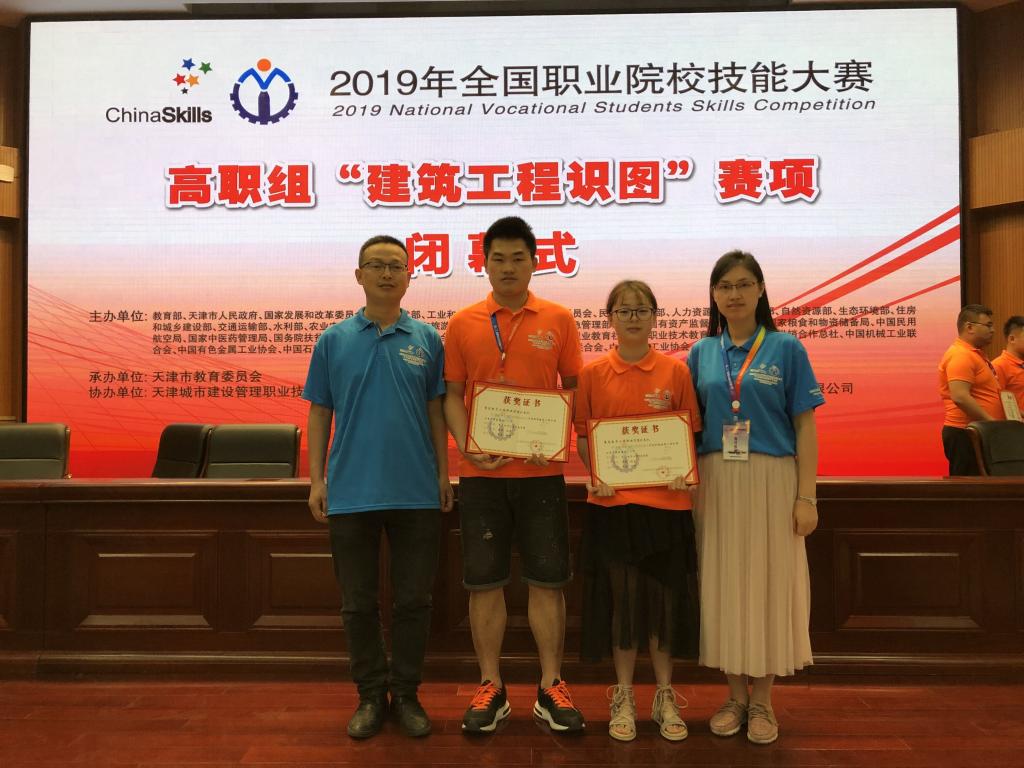 日前,由教育部等35个部委(单位)联合主办的2019年全国职业院校技能大赛“建筑工程识图”赛项在天津城市建设管理职业技术学院圆满落下帷幕,来自全国的105支高职院校队伍参加了此次竞赛。pg国际建筑与材料学院杨桔、赵磊同学在钟伟老师和廖艳老师的指导下组成团队,与来自全国的选手们同场竞技,比拼实力。经过5个小时的激烈角逐,pg国际参赛选手以良好的心理素质、扎实的专业技能、齐心协力的团队精神,最终荣获全国职业院校技能大赛“建筑工程识图”赛项团队三等奖。