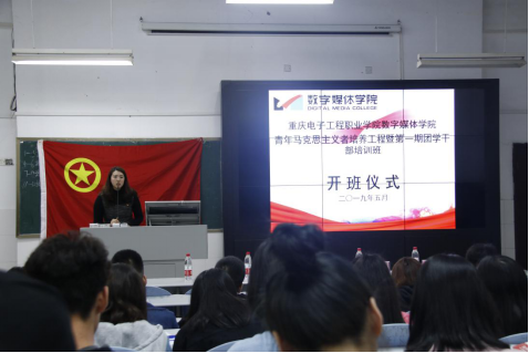 2019年5月8日上午九点,数字媒体学院在南校区7-210教室举行2018年-2019年第二学期青年马克思主义者培养工程暨第一期团学干部培训开班仪式。出席开班仪式的有数字媒体学院党总支书记彭海深同志、党总支副书记钟佐彬同志、校团委彭婧老师、丁文雅老师及全体辅导员老师,学生干部120余人参加了开班仪式。仪式由团总支书记吴艾佳主持。