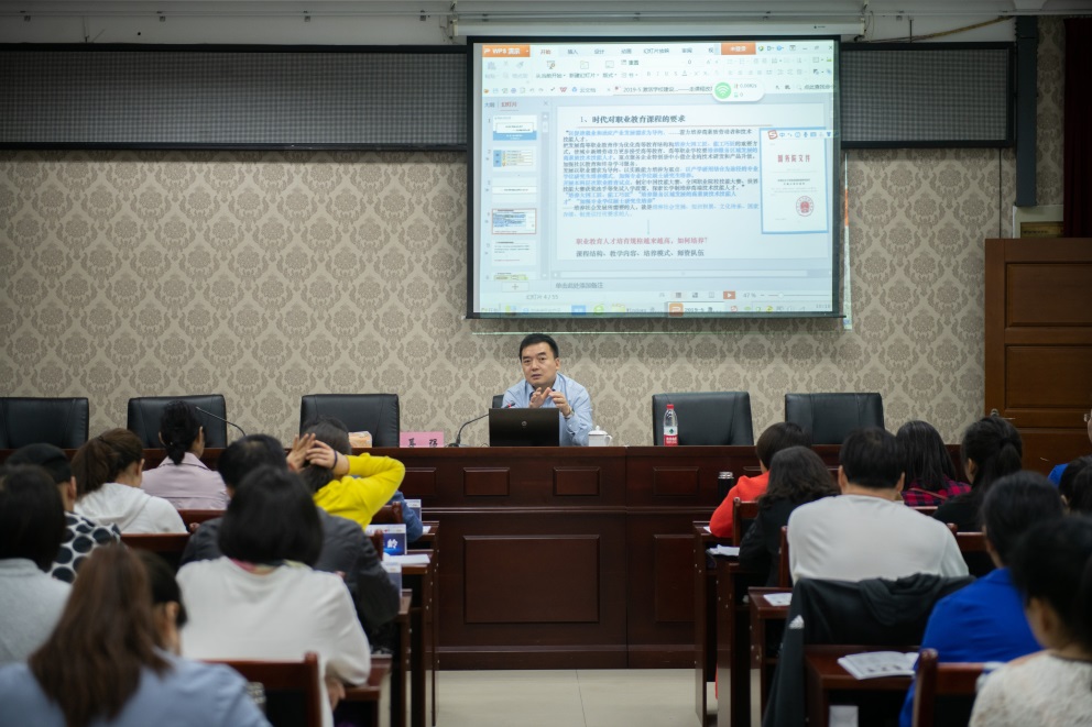 校长聂强说,在职教活动周开幕时节迎来了河南省中职学校专业带头人领军能力研修班的开班,对前来参训的各位学员表示热烈欢迎,并就学校的基本情况、专业设置、内涵发展和教学成果等方面的情况进行了介绍。他希望参培老师遵守纪律,注意安全,在培训中教学相长,相互交流、切磋,通过培训,对职业教育理念有所感悟,祝愿大家学有所成。