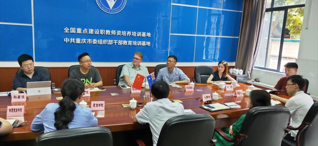 首先,国际交流与合作发展处处长莫绍强对来访的各位嘉宾表示热烈欢迎,介绍了学校的建校历史,专业特色及专业优势,pg国际在职业类院校排名全国50强,特色专业排名全国第6彰显了重电的势力,给与会者留下了深刻的印象。随后由重教国际副秘书长谢世波,就中外人文交流(重庆)试验园区签约建设、百富学院邹院长以及重教国际澳洲基地Robert主任的国际教育资料做了介绍。同时,Robert针对性的介绍了澳洲在通信领域、健康领域的资源优势。百富学院副院长Prof. Zou Changzheng也同步分析了通信人才及健康领域人才在澳洲长期存在巨大需求。