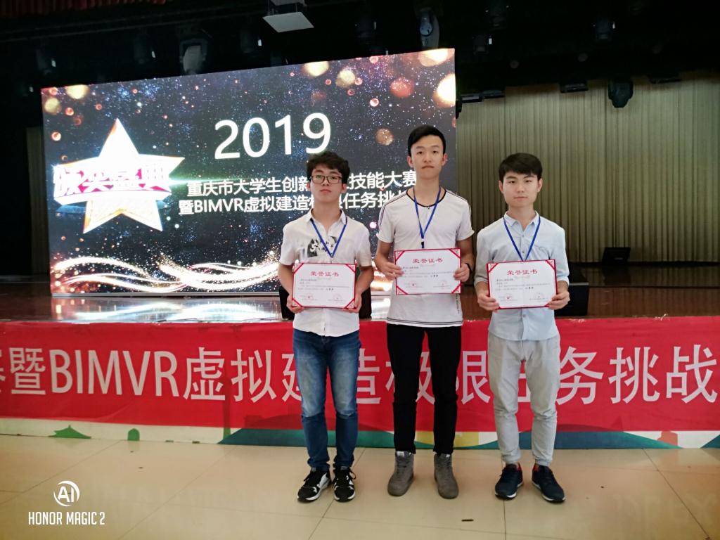4月24日,第二届重庆市大学生创新创业技能大赛暨BIMVR虚拟建造极限任务挑战赛圆满落下帷幕。建筑与材料学院师生代表队首次参赛,在22支队伍中的,以第七名的优异成绩荣获二等奖。