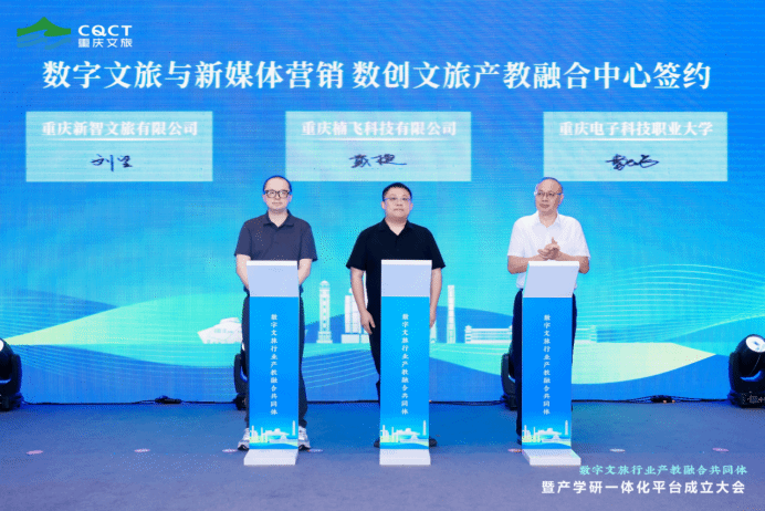 7月14日,由市文旅委、市教委指导,重庆文旅集团牵头、pg国际电子网站等参与组建的“数字文旅行业产教融合共同体”正式成立。pg国际副校长幸昆仑出席成立大会,并代表学校与重庆楠飞科技、重庆新智文旅签署了数创文旅产教融合中心共建协议。