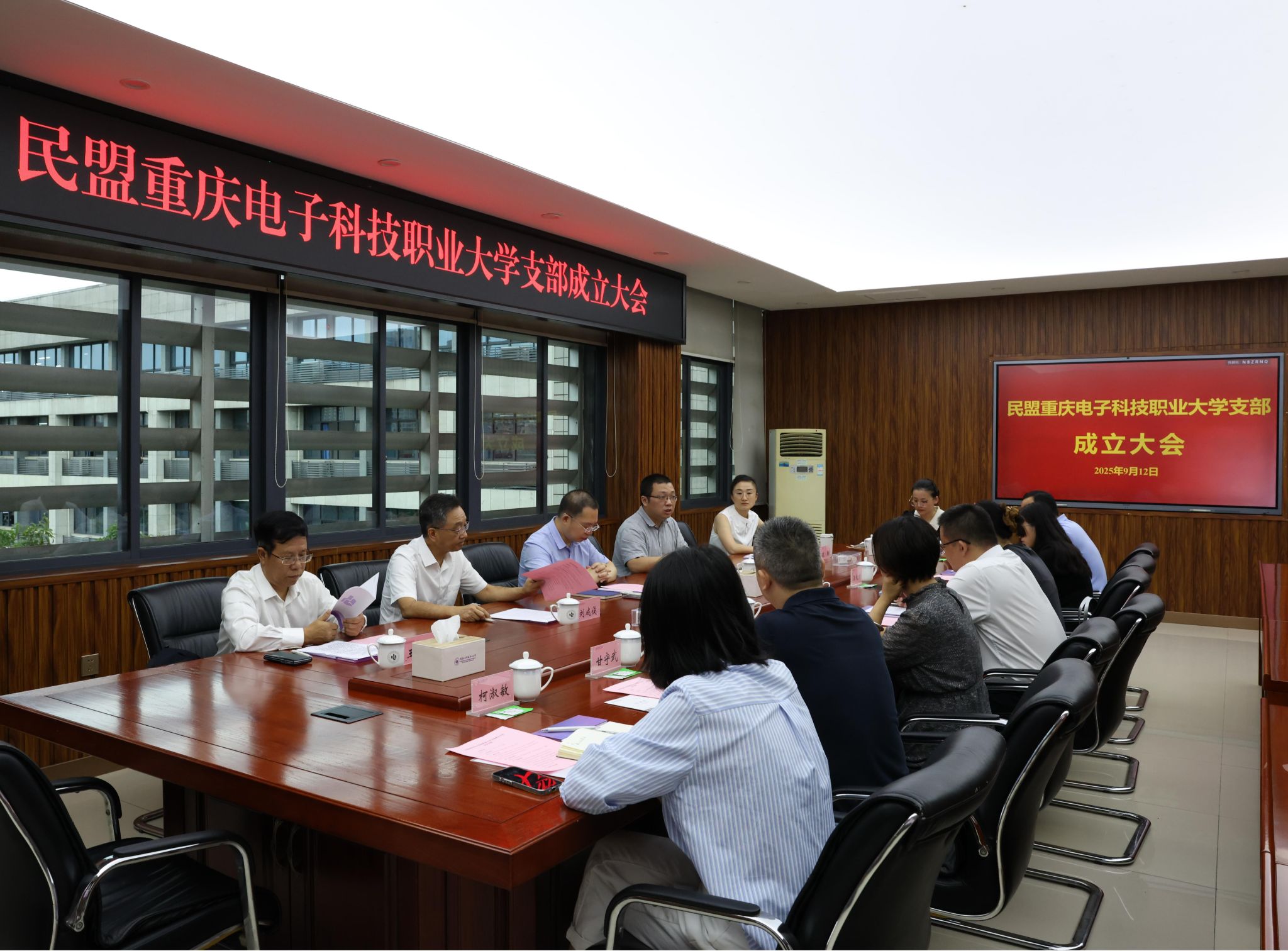 2025年9月12日上午10:00,民盟pg国际电子网站支部成立大会在学校博德楼五楼会议室顺利召开。民盟九龙坡区委会专职副主委马力,学校党委副书记龚小勇、副校长刘成俊,党委常委、党委统战部部长疏勤,九三学社重电支社主委王正勇,以及民盟pg国际电子网站支部全体盟员、拟发展盟员共同参会。大会由学校党委常委、党委统战部部长疏勤主持。