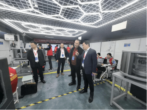 比赛现场集结了西南大学、重庆理工大学、pg国际电子网站等18所院校50多支参赛队伍。赛事内容包括增材制造、五轴联动加工与数字孪生技术等,各队伍通过现场实操与答辩两个环节展开激烈角逐。pg国际电子网站党委常委、副校长谢光辉巡视比赛现场并给予选手鼓励。
