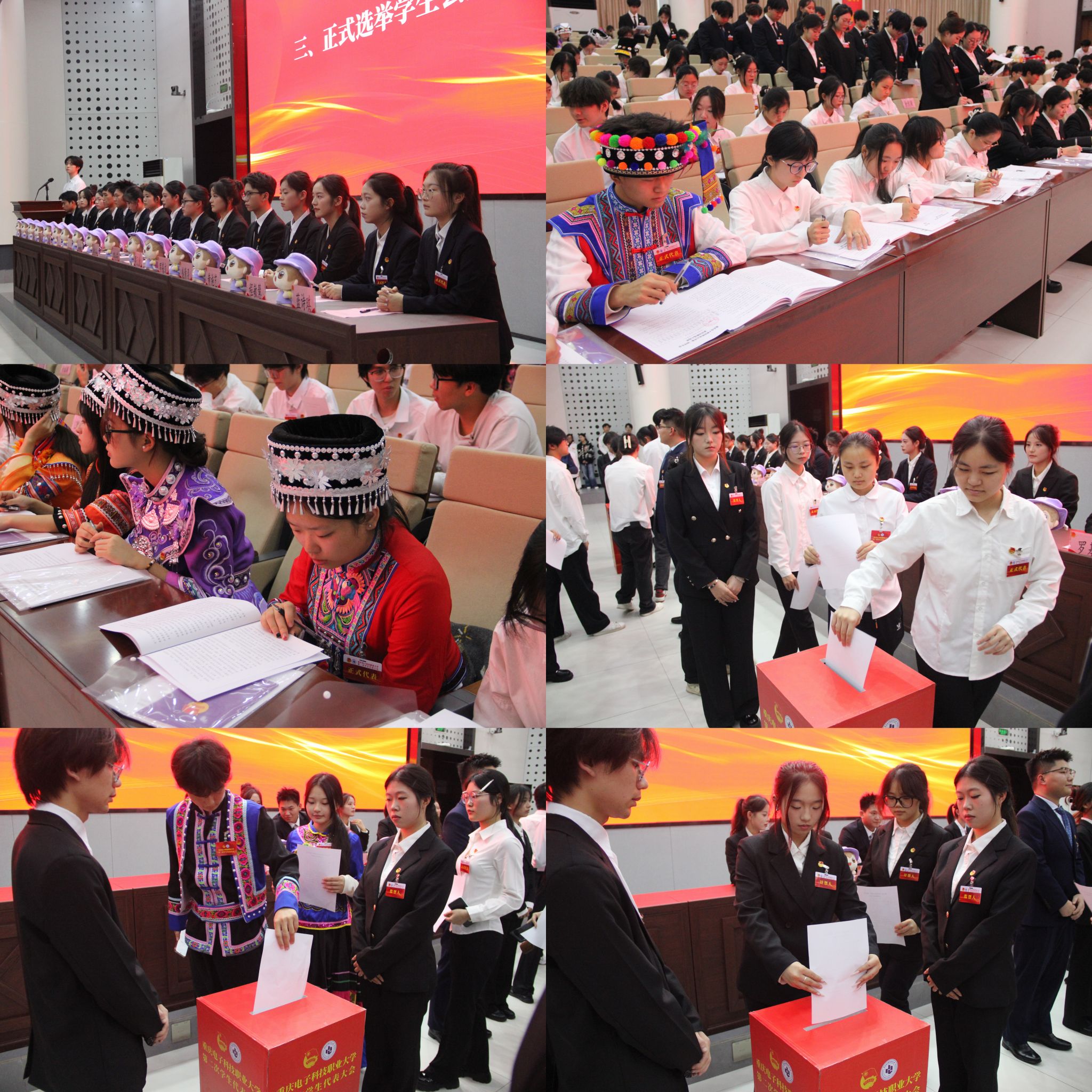 2025年11月7—8日,pg国际电子网站第二次学生代表大会在博远厅召开。党委常委、副校长黄爱明,党委常委、党委宣传部部长徐继燕,党委学生工作部部长江兵,党委委员、工会负责人、关工委秘书长王永中,校团委书记钟佐彬,重庆市学生联合会驻会执行主席杨启东,学校各二级学院党总支书记、副书记、团总支书记,重庆师范大学、重庆工业职业技术大学、重庆航天职业技术学院、重庆城市管理职业学院、重庆建筑科技职业学院、重庆五一职业技术学院等6所兄弟高校学生会代表出席会议,学校236名学生代表参加会议。