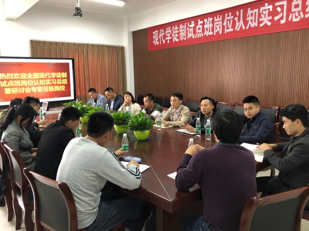 为推进汽车制造与装配技术专业现代学徒制项目的人才培养计划进度,总结2018—2019学年第一学期现代学徒制学生在企业学习情况,解决现代学徒制项目在校企联合培养过程中发现的问题,落实好后期现代学徒制项目培养计划,智能制造与汽车学院与长安汽车公司、迈奥汽车设计公司、清研理工汽车检测公司及安波福电气公司单位负责人、班组指导师傅于2019年4月15日在机电工程中心B301举办了现学徒制项目人才培养总结暨研讨会。