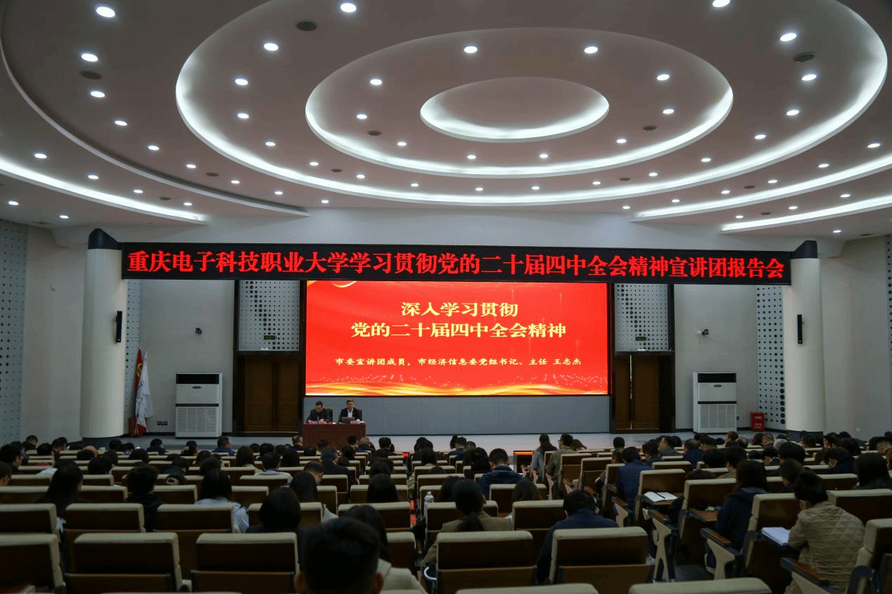 按照市委统一安排,11月14日上午,学习贯彻党的二十届四中全会精神市委宣讲团在pg国际电子网站宣讲。市委宣讲团成员、市经济信息委党组书记、主任王志杰作宣讲报告。pg国际电子网站党委副书记、校长聂强主持报告会。