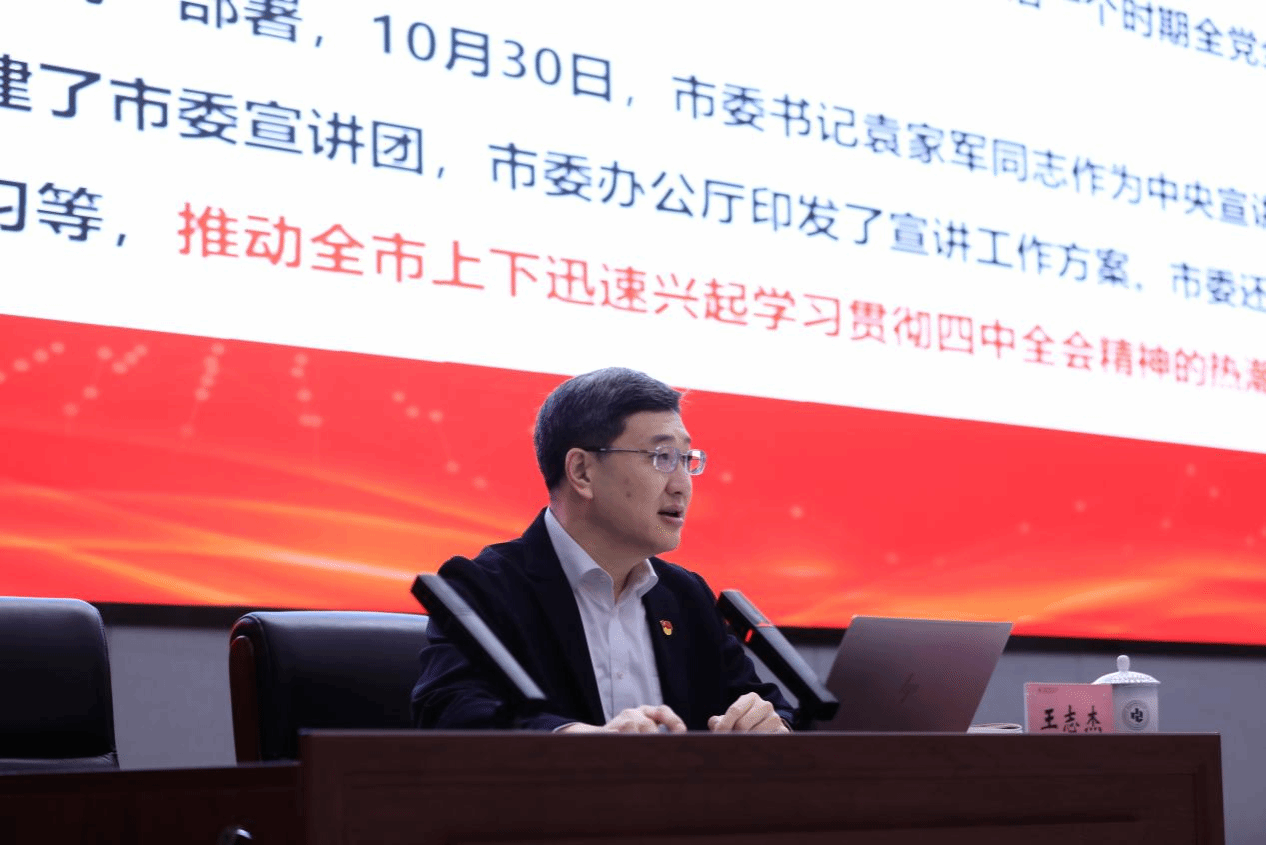 王志杰紧紧围绕习近平总书记在党的二十届四中全会上的重要讲话和《中共中央关于制定国民经济和社会发展第十五个五年规划的建议》,从党的二十届四中全会的重要意义,准确把握“十五五”时期在基本实现社会主义现代化进程中的重要地位,深刻领会“十五五”时期经济社会发展的指导方针和主要目标,全面理解“十五五”时期经济社会发展的战略任务和重大举措,坚持和加强党的全面领导、凝聚起推进中国式现代化的磅礴力量,对标对表、深谋实干,体系化推动党的二十届四中全会精神在重庆一贯到底等六个方面,对全会精神展开了系统阐释与深度解读。