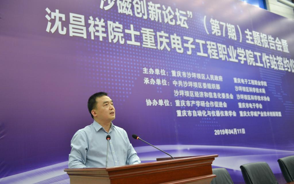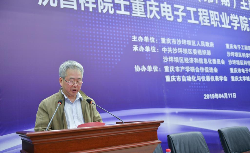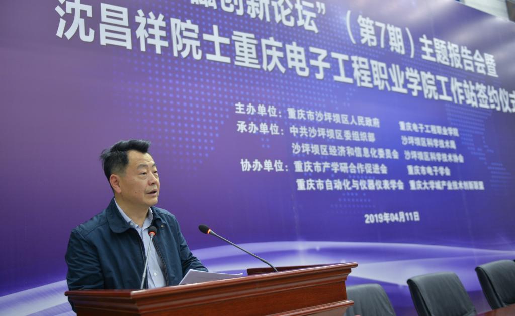 4月11日上午,沈昌祥院士重庆电子工程职业学院工作站揭牌仪式暨“沙磁创新论坛”(第七期)沈昌祥院士主题报告会在重庆电子工程职业学院举行,中国工程院院士沈昌祥及其团队、市委教育工委副书记覃正杰、市经信委副巡视员刘伟、沙坪坝区政协副主席郭明月、沙坪坝区委组织部副部长姚明、市科协、重庆市产学研合作促进会、重庆市自动化与仪器仪表学会、重庆中电光谷科技产业发展有限公司、重庆溢希恩真节能电力设备有限公司、众诚智库咨询顾问(北京)有限公司、沙坪坝区发改委、区科协、区科技局、区经信委、区工商联、区人社局以及大学城周边相关街道领导与合作企业代表、重庆电子工程职业学院校级领导、处科级干部以及教师、学生代表共计300余人出席了活动,重庆电子工程职业学院校长聂强主持会议。