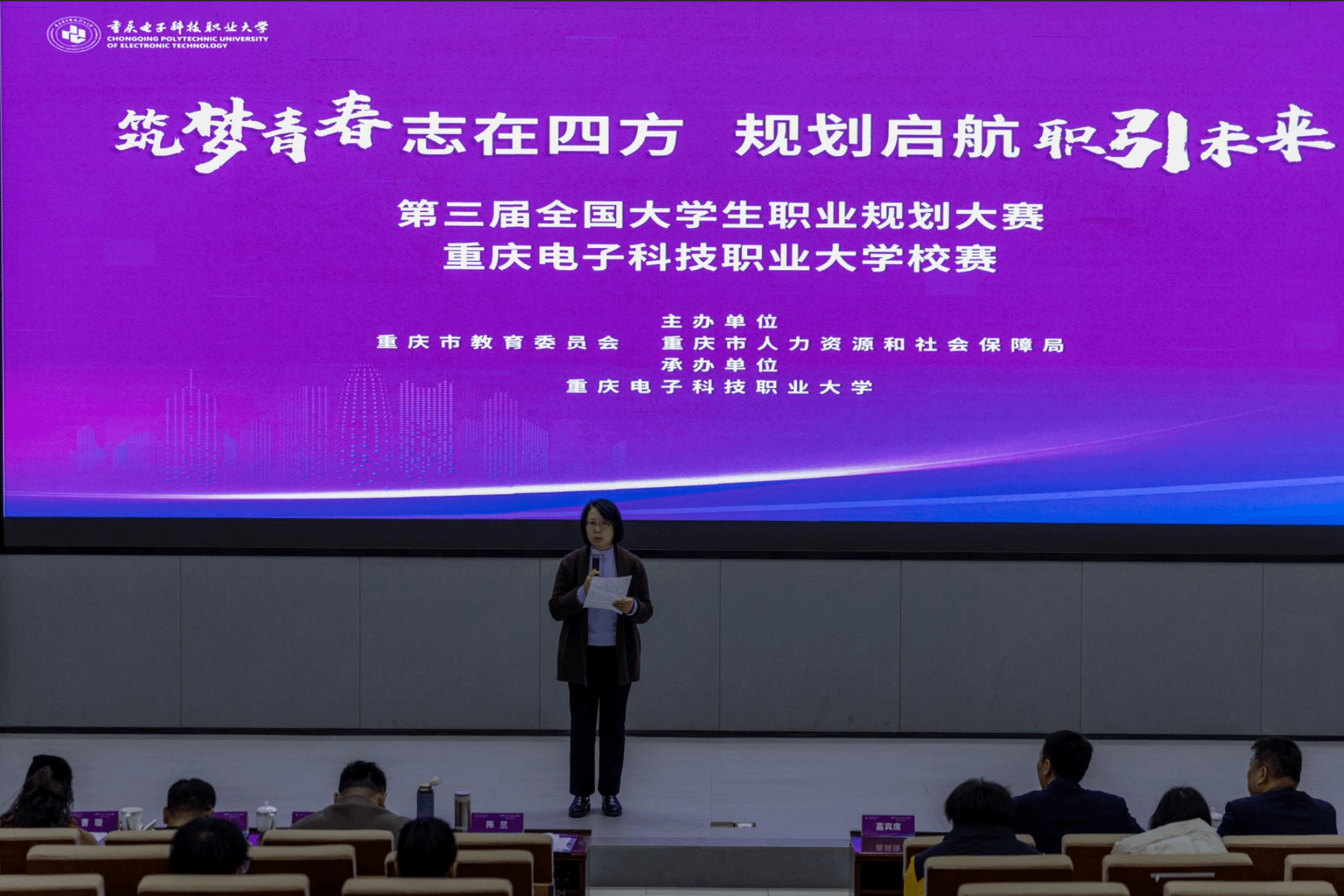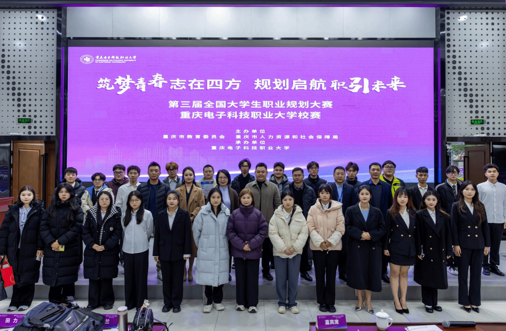2025 年12月4日,由重庆市教育委员会、重庆市人力资源和社会保障局主办,pg国际电子网站招生就业处承办的“筑梦青春志在四方 规划启航职引未来”第三届全国大学生职业规划大赛校级决赛在学校博远厅圆满收官。