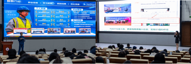 本次大赛设成长赛道与就业赛道,32名决赛选手从全 18000 余名报名参赛者中脱颖而出,经二级学院初赛层层选拔晋级校赛。比赛分为“自我陈述和评委提问”两大环节,旨在全面考察选手的职业认知、规划能力、实践积累和表达沟通素养。选手们围绕职业目标、学习实践、成果转化与优化改进等核心内容展开精彩展示,其扎实的专业储备与清晰的职业规划获得评委们一致认可。