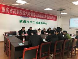 2019年1月16日上午9点30分,重庆市高职院校汽车制造与装配技术专业建设研讨会在我院长安欧尚汽车技术服务中心举行。重庆科创职业学院、重庆工商职业学院、重庆交通职业学院、重庆三峡职业学院、重庆机电职业技术学院和重庆电讯职业学院等汽车制造与装配技术专业负责人、骨干教师共16人参加了本次研讨会。会议由智能制造与汽车学院汽车制造与装配技术专业负责人张俊峰主持。