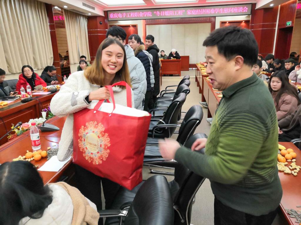 座谈会最后,王平副校长给学生发放御寒慰问品,同学们在寒冬到来之际感受到了浓浓的暖意。