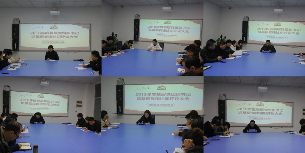 2019年1月9日,财经管理学院召开2018年度基层党组织书记抓基层党建述职评议大会。学院党总支委员,各支部书记及支部委员参加了会议。会议由党总支副书记廖坤科同志主持。